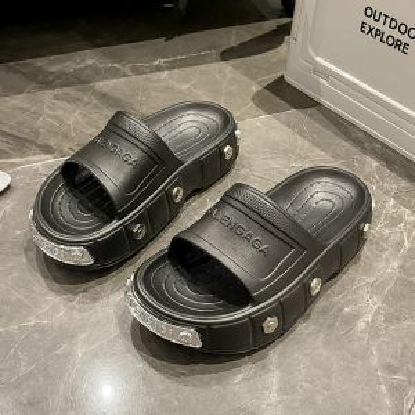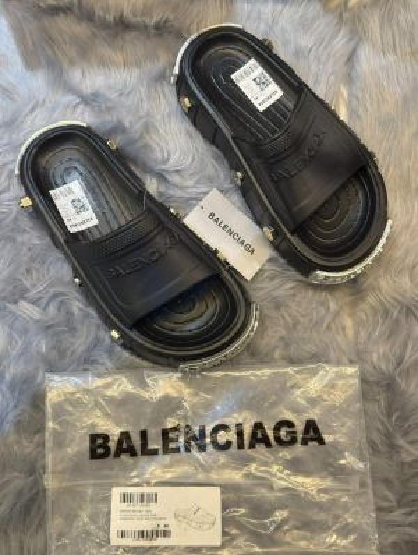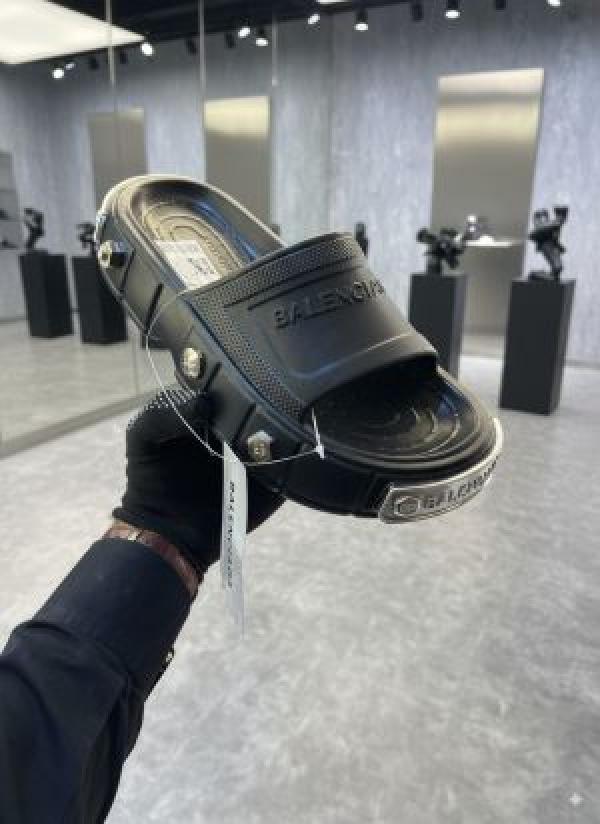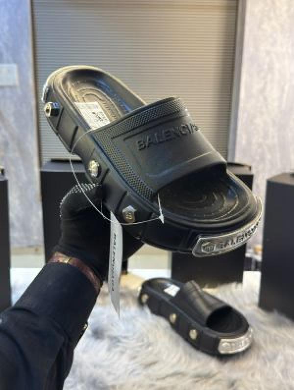 Balenciaga Clog Pool Embossed Logo Premium Black Slides