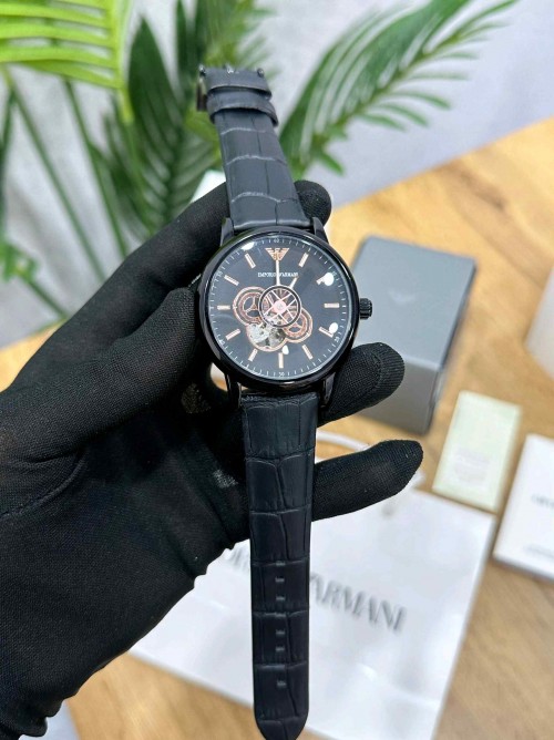 EMPORIO ARMANI_ AUTOMATIC SKELETON ALL BLACK LEATHER BELT