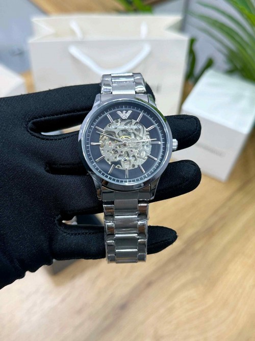 EMPORIO ARMANI_ MECCANICO OPEN HEART SILVER BLACK