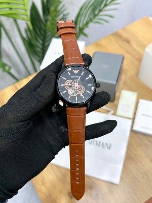 EMPORIO ARMANI_ AUTOMATIC SKELETON BLACK BROWN LEATHER BELT