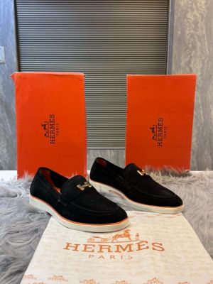 Hermes_logo Black 100% Genuine Suede Leather