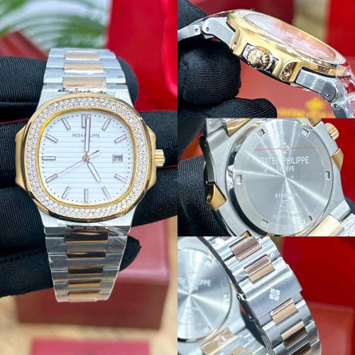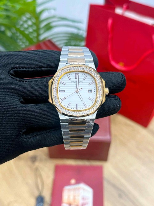 PATEK_PHILIPPE_ NAUTILUS BAGUETTE DIAMONDS BEZEL WHITE DIAL