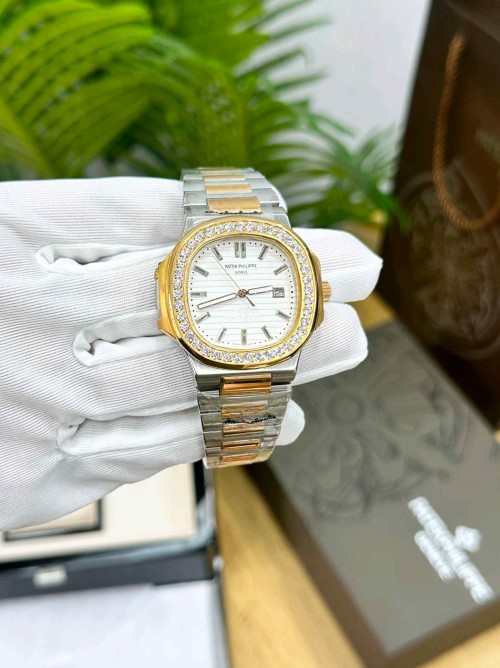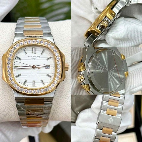 PATEK_PHILIPPE_ NAUTILUSBAGUETTE DIAMONDS BEZEL white DIAL