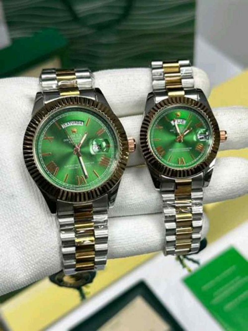 rolex_day date couple to tone rose gold green