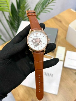EMPORIO ARMANI_ AUTOMATIC SKELETON ROSE WHITE BROWN LEATHER BELT
